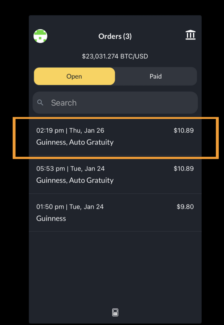 Step 6: Navigate to “Orders” page. The app should default open up to this page, but if it does not, navigate to the home page. Then, hit the calculator icon on the top right of the home page.