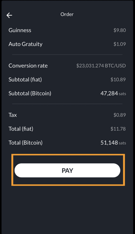 Step 2: Request gratuity. When the patron says they would like to pay in Bitcoin, ask them what they would like to tip